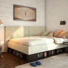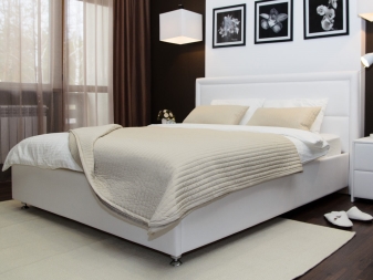 - حل خارجي أنيق. توافق على أن السرير الضخم والواسع يخلق إحساسًا منزليًا وسيبدو جيدًا في غرفة النوم. عادة ما يكون صندوق هذه النماذج على الأرض ويحدث تأثيرًا “ثقيلًا” ؛