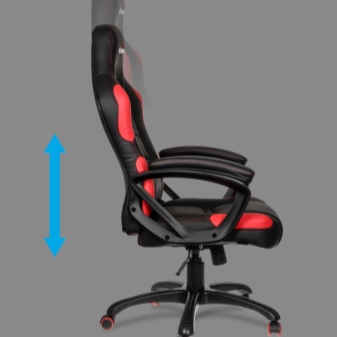 مواد مساند الذراعين – بلاستيك. ولكن بفضل وجود وسادات ناعمة في الأعلى ، من الملائم الاتكاء عليها. مثل جميع طرازات كراسي الكمبيوتر ، تحتوي أيضًا على ذراع لضبط ارتفاع المقعد. يقع تحت الكرسي على الجانب الأيمن. بالإضافة إلى الارتفاع ، يمكن أيضًا ضبط زاوية الميل حتى 18 درجة..