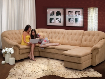 أيضا من بين الأرائك الكبيرة يمكن تمييزها “دريسدن” و “بروغن”. تختلف النماذج الفاخرة ذات المظهر النبيل في نوع الروابط الموجودة على الظهر ومساند الذراعين. يبدو أن الأشكال المستديرة المتدفقة والوسائد الناعمة تدعو شركة ودودة لقضاء بعض الوقت مع محادثة ممتعة. حجم كلا الخيارين 2920 × 2050 مم. خيار آخر أنيق وأنيق هو أريكة الزاوية كابري. النموذج مثالي للديكورات الداخلية الكلاسيكية ، ويمكن استكماله بكرسي مريح قابل للطي. حجم الأريكة – 2800 × 1930 مم.