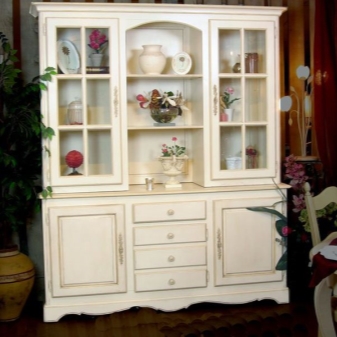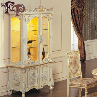 يجب أن تحتوي الخزانة بالضرورة على أجزاء إضافية مصنوعة من مواد أخرى – مقابض مصنوعة من الفضة أو النحاس أو العاج ، وإدراج على أبواب الزجاج ، والزجاج الملون ، والفسيفساء.