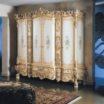 بالنسبة للنسخة الحديثة من الباروك ، يمكنك اختيار خزانة ملابس كبيرة إلى حد ما مع مرآة على الواجهة. يجب أن يكون إدراج المرآة مزينًا بالذهب حول الحواف. جميع التفاصيل المحدبة للديكور مغطاة أيضًا بطلاء ذهبي – هذا هو اللون الرئيسي للباروك.