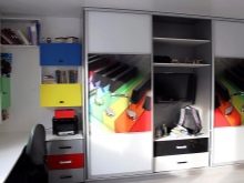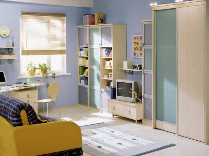 ستصبح خزانة الملابس أيضًا مريحة ومريحة في غرفة الصبي. يمكن وضعها بشكل ملائم حتى في منطقة صغيرة. تشمل مزايا هذا النموذج حقيقة أن الباب ينفتح بسهولة ويسر دون شغل مساحة إضافية. وبالتالي ، سيكون من الممكن وضع مثل هذه الخيارات حتى في أكثر الغرف إحكاما..