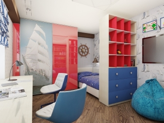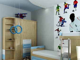 بالنسبة للرجال الذين وصلوا بالفعل إلى سن المراهقة ، يجب عليك اختيار المزيد من الظلال العملية. قد لا تكون مشرقة وملونة. على سبيل المثال ، تعتبر الألوان الزرقاء العميقة أو الرمادي الداكن مثالية لغرفة نوم الصبي. في الوقت نفسه ، يمكنك أيضًا التعبير عن شخصيتك الفردية بمساعدة الرسومات. يمكن أن تكون هذه صورًا لأشخاص مشهورين مهمين للمراهق أو شخصيات أفلام مفضلة أو أفكار مجردة. الشيء الرئيسي هو أن كل شيء يتم دمجه مع مفهوم نمط واحد للغرفة..