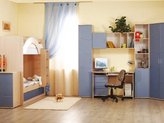 هذا الأثاث عبارة عن مجموعة كاملة من المنتجات. يتم بيعها كمجموعة واحدة. على سبيل المثال ، خزانة ملابس وسرير ومكتب متصلان معًا. يمكنك توفير أموالك بشكل مثالي ، ومساحة الغرفة ، وأيضًا ملاءمة المنتجات بشكل أنيق ومتناسق في الحضانة. من الجدير بالذكر أن هذه الخيارات يمكن أن تكون مناسبة لطفلين. بعد كل شيء ، تحتاج إلى شقة أكثر اتساعًا لسريرين. وبذلك يمكنك إنشاء التصميم الداخلي المثالي ومكانًا مثاليًا للاسترخاء لأطفالك.