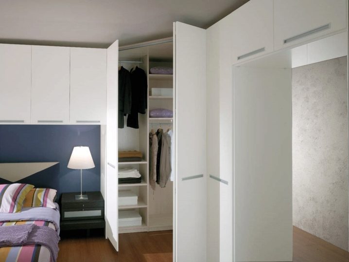 - من أجل الاستخدام الاقتصادي لمساحة الزاوية وتوفير بضعة أمتار مربعة إضافية في غرفة صغيرة ، فإن خزانة الزاوية مناسبة ؛