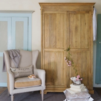 - للحماية من التأثيرات الخارجية وإضفاء اللمعان على هيكل الخزانة المصنوع من الخشب الطبيعي الصلب ، تحتاج إلى استخدام عامل عناية يحتوي على الشمع.