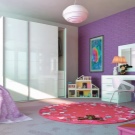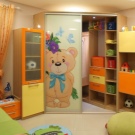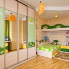 بالنسبة لواجهات الخزانات المنزلقة في الحضانة ، يتم استخدام الألوان الفاتحة ، وكذلك الألوان الزاهية: البرتقالي والأزرق والأخضر. غالبًا ما تنتهي الواجهات بملصقات بها صور لشخصيات كرتونية أو أبطال حكايات خرافية..