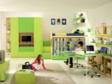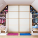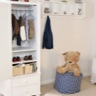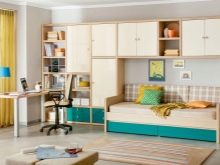 يتم ترتيب نظام تخزين مضغوط في الحضانة حول السرير أو المدخل. على جانبي اللوح الأمامي أو الباب ، يتم تثبيت زوج من الخزانات المتماثلة الممتدة من الأرض إلى السقف. من الأعلى ، تتصل هاتان الوحدتان باستخدام طابق نصفي أو حتى رف مفتوح..