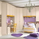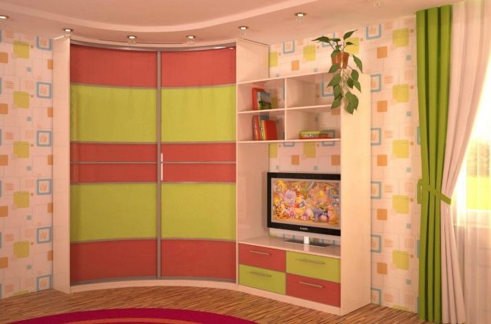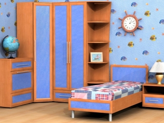 تسمح لك خزانة الملابس الزاوية لغرفة الأطفال بوضع أكبر عدد ممكن من الأشياء بأقل مساحة. يستخدم هذا التصميم ركنًا من الغرفة حيث لا تتناسب العديد من العناصر الداخلية..