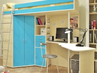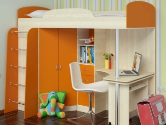 في مثل هذا النموذج ، يوجد دائمًا ركن للألعاب على شكل درج يسحب للخارج. لمزيد من الاستخدام المريح لنظام التخزين هذا من قبل الطفل ، يمكن عمل شريط إضافي منخفض ، والذي يتم إزالته عندما يكبر الطفل.