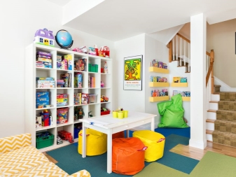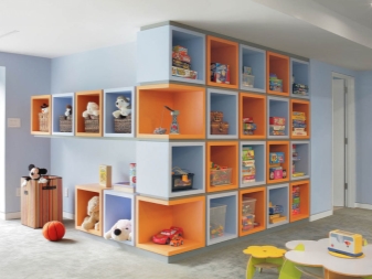 لا يمكن لخزانة الأطفال العالمية أن تناسب جميع الألعاب وألعاب الطاولة المتاحة. لهذا السبب ، هناك حاجة إلى نظام تخزين منفصل. مطلوب مكان خاص للعب الأطفال من السنة الأولى من حياة الطفل.