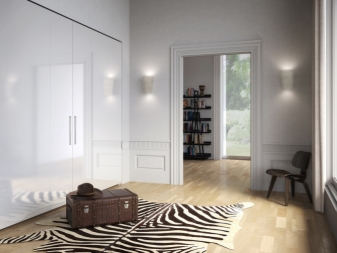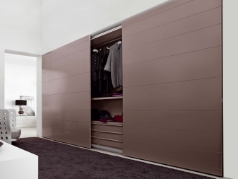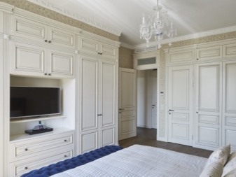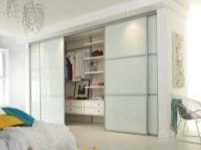 خزانة الملابس تستحق عناية خاصة والتي تعتبر من أكثر التصاميم حداثة. الأبواب الانزلاقية عملية أكثر بكثير من الأبواب المتأرجحة. يوجد خلفهم عدد كبير من الأرفف ومساحة خالية لتخزين كل الأشياء الضرورية..