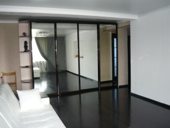 كما تعلم ، فإن الأسطح المرآة تزيد المساحة بشكل كبير ، وهو أمر جيد جدًا لغرف المعيشة الصغيرة. وإذا كنت تخشى أن تكسر مثل هذا الباب عن طريق الخطأ ، فاختر الطرز التي تتم فيها معالجة السطح الزجاجي باستخدام تقنية خاصة تجعل المرآة متينة ومقاومة للضرر الميكانيكي. بالمناسبة ، يمكن للتقنيات الحديثة أن تحميك من الأوساخ ، إذا اخترت طلاءًا مناسبًا يحمي من الخطوط والغبار..