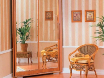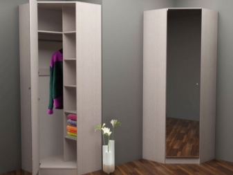 سوف تتناسب الخزانة المثلثة مع المرآة بشكل جيد مع غرفة النوم المصغرة. في اللون ، يجب دمجه مع زخرفة الجدار ، حتى لا تشوش مساحة غرفة النوم بصريًا..