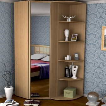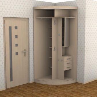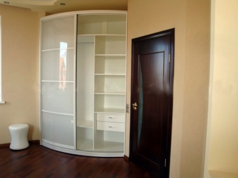 وتجدر الإشارة بشكل خاص إلى نماذج زاوية نصف القطر. هذه الخزانات المستديرة مناسبة للأنماط آرت ديكو ، إمبراطورية. بسبب تعقيد التصنيع ، فهي باهظة الثمن. الخزانات المحدبة ضخمة إلى حد ما ، وخزائن الزاوية المقعرة صغيرة ، فهي توفر مساحة بشكل كبير ، مع وجود سعة تخزين جيدة..