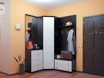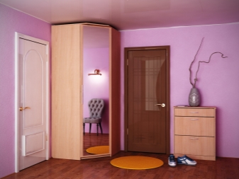 - المدخل. بالنسبة إلى رواق صغير ، فإن خزانة الملابس الزاوية هي مجرد هبة من السماء. يمكنك وضع الملابس والأحذية فيه. نظرًا لكونها مضغوطة ، فإن هذه الخزانة عادة ما تشغل مساحة حتى السقف ، حيث توجد حجرات في الأعلى لتخزين العناصر الموسمية. يمكنك توسيع المساحة بصريًا بمساعدة واجهة عاكسة ، بالإضافة إلى ألوان فاتحة في الزخرفة. بالنظر إلى اللون الأبيض المتسخ ، من الأفضل إعطاء الأفضلية لظلال اللون البيج والليمون والوردي. على سبيل المثال ، يخلق اللون الأصفر وهم ضوء الشمس. تؤدي المرآة الموجودة في الممر أيضًا مهمة وظيفية: يمكنك النظر إلى نفسك بنمو كامل قبل الخروج. في الردهة الضيقة ، يتم تحديد خزانة زاوية ذات عمق أدنى ، ولكن مرتفع. لسهولة الاستخدام ، من الأفضل تجهيزها بأبواب الخروج أو الستائر.