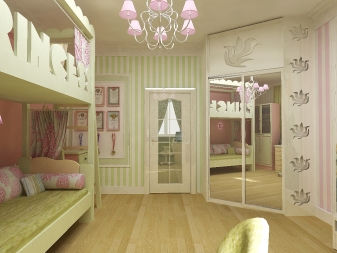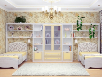 - إذا كانت الغرفة مخصصة ليس فقط لفتاة ، ولكن أيضًا للصبي, سيكون من المناسب اختيار خزانة ملابس بتصميم محايد. دعها تقسم إلى جزأين شرطيين بالداخل ، بحيث يكون لكل طفل منطقة تخزين شخصية ؛