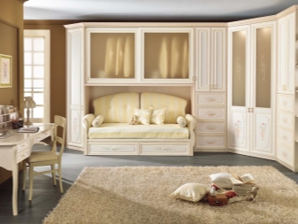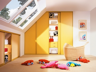 مثالي لتوفير مساحة في الغرفة. من المزايا المهمة لهذا الأثاث سعته الكبيرة وقدرته على ملاءمة جميع الأشياء تقريبًا ، من الألعاب إلى الملابس الخارجية. إذا كانت هناك منافذ في غرفة الأطفال أو بعض الزوايا غير المناسبة لاستخدام العناصر الداخلية الأخرى ، فإن خزانة الملابس المدمجة تناسب هذه الأماكن بشكل مثالي..