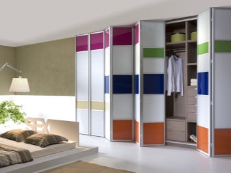 خيار آخر لإغلاق مثل هذه الخزانة هو الأبواب مع مبدأ الأكورديون. مرة أخرى ، هذا مثالي للحفاظ على المساحة في الغرفة. ميزة أخرى مهمة هي القدرة على تدوير الهواء في الداخل بفضل إدراج الرف والجناح. بالنسبة للفتاة ، سيكون اللون الأبيض هو الأفضل لمثل هذه الأبواب..