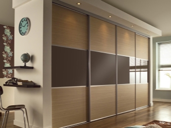 غالبًا ما يقتصر طول الخزانة على عرض الجدران وارتفاعها ، لأنها تغطيها بالكامل. يتكون هذا الهيكل من عدة حجرات مستقلة ، يتم تثبيتها معًا.