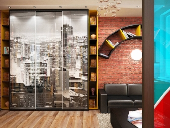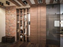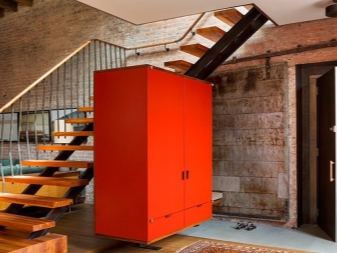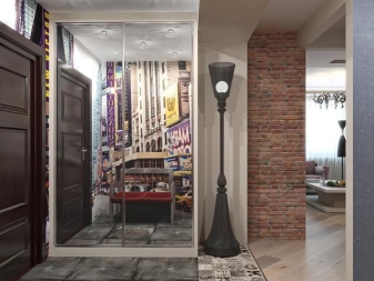 الخيار الأكثر وضوحًا وتوقعًا هو التثبيت في الردهة. الممر هو ما يراه جميع الضيوف أولاً. لذلك ، يجب أيضًا أن تكون مصممة بشكل جميل.. تبدو قاعة المدخل المصممة على طراز الدور العلوي أنيقة وعصرية. خزانة ملابس ضخمة ستكون مناسبة فيه. ينصح المصممون بإعطاء الأفضلية للأثاث ذي الأشكال الصارمة والمصنوع من مادة خشنة..