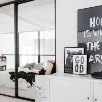 تبدو خزانة الملابس ذات الباب المرآة جيدة أيضًا. يعد هذا خيارًا مناسبًا حيث ستتمكن من رؤية نفسك بارتفاع كامل. كما أن مظهر مثل هذا المنتج ممتع أيضًا ، لأنه يتناسب تمامًا مع التصميم الداخلي الحديث..