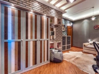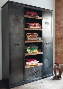 تختلف خزانة الملابس المصنوعة من الخشب أو اللوح أيضًا عن الخزانة الكلاسيكية. بالنسبة لهذا النمط الصناعي ، يكون المنتج المصنوع على عجل هو أكثر ملاءمة – يتكون من ألواح خشنة مزينة بطوابع أو تفاصيل أخرى. الأثاث ذو الطراز العتيق يبدو أيضًا مثيرًا للاهتمام..