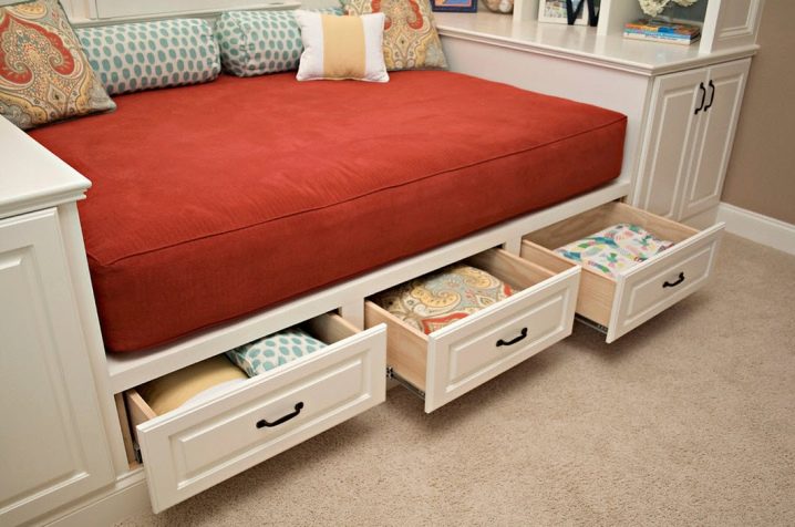 - توفير مساحة. ربما يكون هذا هو المؤشر الأول الذي ينتبه إليه المشترون ، خاصة أولئك الذين لديهم مساحة صغيرة. إنه مثل هذا السرير الذي سيساعد في توفير الأمتار المربعة الخاصة بك. ستكون قادرًا على الراحة بشكل مريح على السرير ، بينما سيكون هناك مكان يمكنك فيه وضع الأشياء والأشياء الضرورية والمهمة بالنسبة لك..