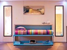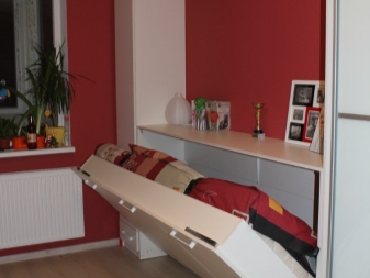 - قابلة للطي. يمكن أن يوفر هذا الأثاث أيضًا مساحة في غرفتك. عند طيها ، قد يكون من الصعب فهم أن هذا مكان للنوم. ظاهريًا ، سيكون هذا الأثاث عبارة عن خزانة ذات أدراج فقط. في الوقت نفسه ، حتى لا تتحرك المرتبة عند طي السرير ، يتم إرفاقها بأشرطة خاصة..