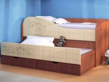 - للمراهقين. تختلف هذه النماذج عن خيارات الأطفال فقط في حجم الواجهات والظلال. عادة ما يكون طول السرير 190-200 سم وعرضه 80 سم..