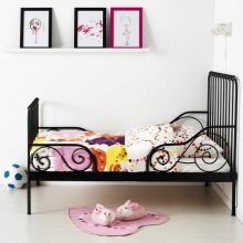 - يعد السرير المنزلق للأطفال أحد أشهر موديلات إيكيا المعدنية. مينين. يتم تنفيذها باللونين الأبيض والأسود. لن تشعر الأنابيب الفولاذية بالبرودة عند لمسها بسبب طلاء مسحوق الإيبوكسي المطبق. يمكن تعديل طول السرير من 135 إلى 206 سم ، والسرير رشيق ومريح ومتين.