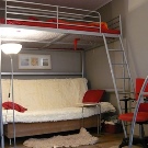 - خيار بطابقين “سفيرتا” مثالية للغرفة التي يعيش فيها طفلان أو حتى ثلاثة أطفال ، لأنه يمكن استكمالها بسرير ثالث قابل للسحب بسرير كامل 90 × 200 سم ، أو يمكن استخدام هذا الخيار للضيوف الذين يقضون الليل. في النموذج ، يتم التفكير في السلامة قدر الإمكان: يتم لصق شرائط مانعة للانزلاق على درجات السلم ، والسرير مستقر ويمكن أن يتحمل وزن البالغين ، والسرير العلوي مجهز بجانب مرتفع.