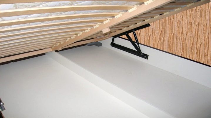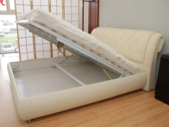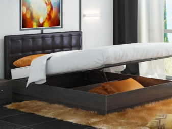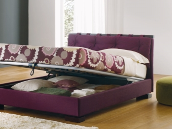 يتمتع نظام التخزين أسفل القاعدة بمزايا واضحة مقارنة بخيارات السحب والطرح. إنه قوي ومريح. من أجل استخدام مكانة متخصصة ، لا يتعين عليك سحب الأدراج ، التي تشغل مساحة خالية متواضعة بالفعل. وحتى في غرف النوم الفسيحة ، من الأسهل والأكثر ملاءمة رفع القاعدة بدلاً من نقل شيء ما وإفراغه في مكان ما..