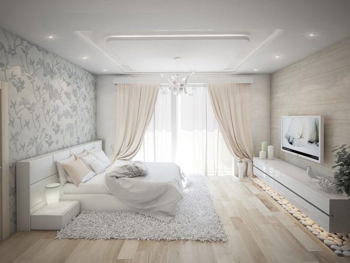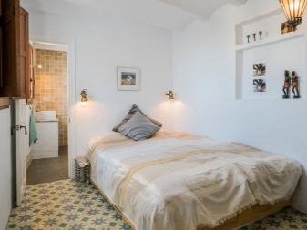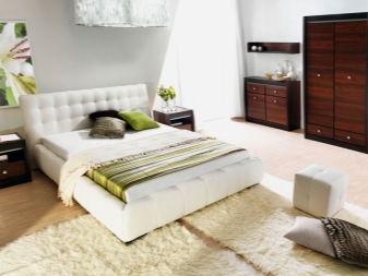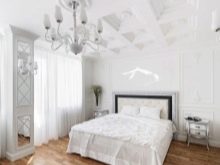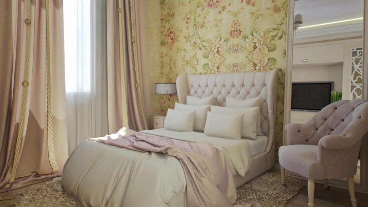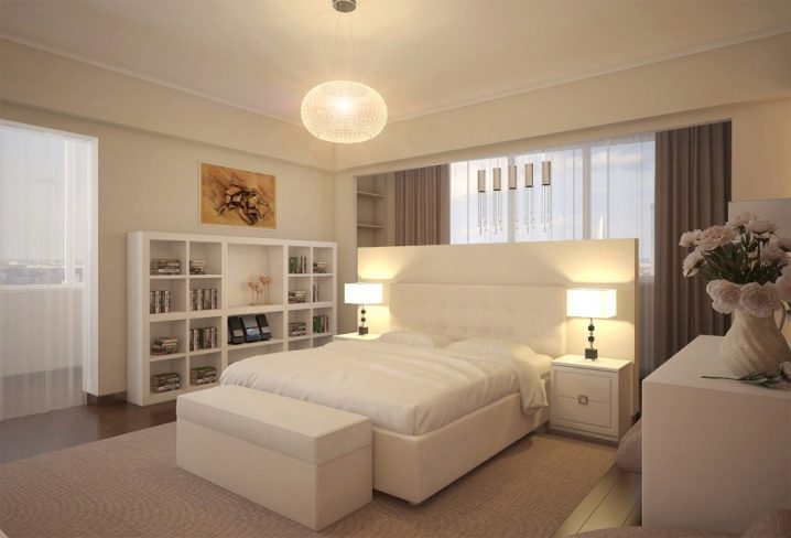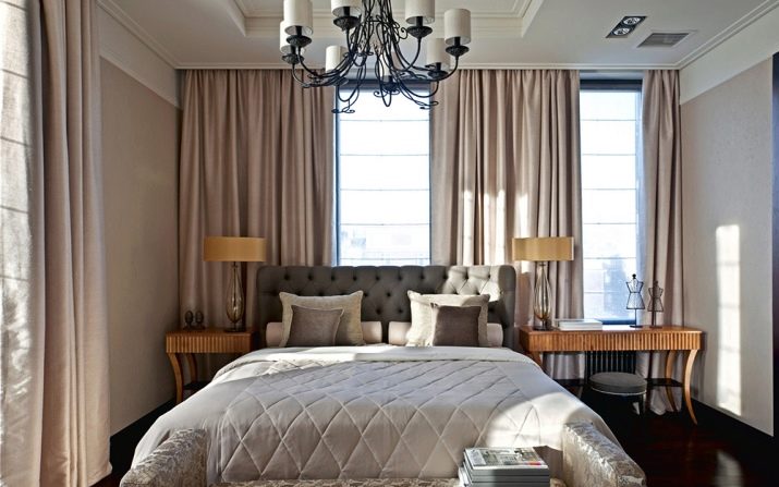 كما ترون ، غرفة النوم هذه تفي تمامًا بالشروط التي لا ينبغي أن يعلقها أي شيء فوق السرير. النوم في مثل هذه الغرفة سيكون حلوًا وهادئًا..
