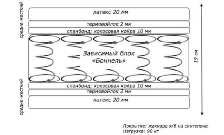 تتكون من نوابض ، كل منها في قسم منفصل ولا تعتمد على الأقسام الأخرى ، مما يسمح لك بالجلوس بشكل مريح على السرير..