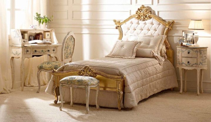 - النمط التاريخي. إنه يجمع بين التصميمات الداخلية الأنيقة والفاخرة والمتطورة ، والتي تميل إلى إظهار الذوق والثروة. هذا النمط لا يتسامح مع الأشياء الرخيصة بشكل كبير. عند اختيار السرير ، يجب أن تعطي الأفضلية للخشب المصمت الطبيعي. سيكون الخشب المصقول حلاً جيدًا. سيعطي هذا تأثير العصور القديمة ، كما لو كان السرير موروثًا من جدة غنية. من حيث الشكل ، يفضل استخدام النماذج الصلبة والوزن الثقيل. يُسمح بظهر مجعد مصنوع من الخشب الصلب والمنحوتات والزخارف المختلفة بالذهب.