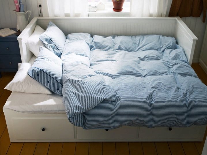 “ميزة” أخرى من ايكيا هي أرائك سرير مع رصيف يسحب للخارج, التي تنزلق بسهولة عند الضرورة ولا تتداخل مع الحياة اليومية على الإطلاق. يعد السرير القابل للطي المزود بمرتبة إضافية مفيدًا لغرفة الطفل ، خاصة إذا كان للطفل غالبًا أصدقاء يقيمون طوال الليل.