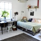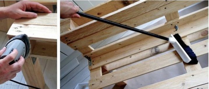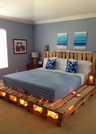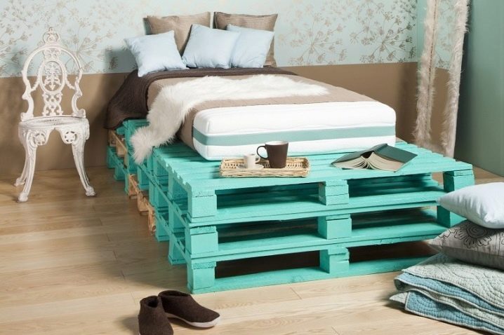 يمكنك عمل مجموعة متنوعة من العناصر الداخلية من المنصات: الأثاث وأنظمة التخزين والعناصر الزخرفية. يسهل تصميمها خفيف الوزن العمل معها. لا يلزم تثبيتها معًا لفترة طويلة ، أو دهانها ، أو تنجيدها بالمنسوجات أو تحسينها باستخدام عجلات أو أرجل ، وهذا هو السبب في أنها مطلوبة جدًا لإنشاء أسرة متينة. بالطبع ، يجب معالجة المنصات قبل بدء العمل. للقيام بذلك ، يتم تنظيفها أولاً من الأوساخ والغبار ، ثم يتم صقلها وتجهيزها. يعد ذلك ضروريًا لحماية المنتج من الآثار الضارة للرطوبة التي يمكن أن تدمر الشجرة..