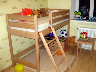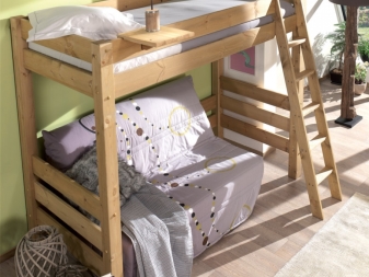 يتم الوصول إلى الطبقة العليا عبر درج صغير. علاوة على ذلك ، يمكن أن تكون رأسية وموجودة بزاوية معينة. كل هذا يتوقف على حجم السرير والغرفة التي تم تركيبه فيها.