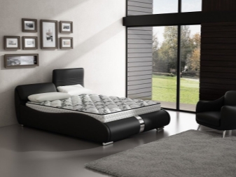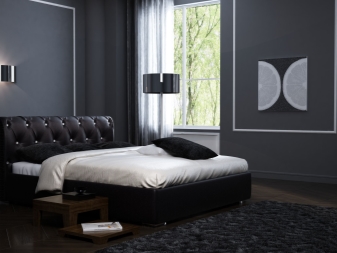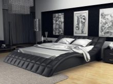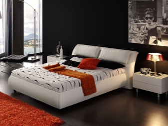 - سرير أسود – أثاث لأنماط حديثة أو عالية التقنية أو لوفت. هذا اللون يجسد الشدة والأناقة. اختيار مثالي لغرفة نوم باللونين الأسود والأبيض.