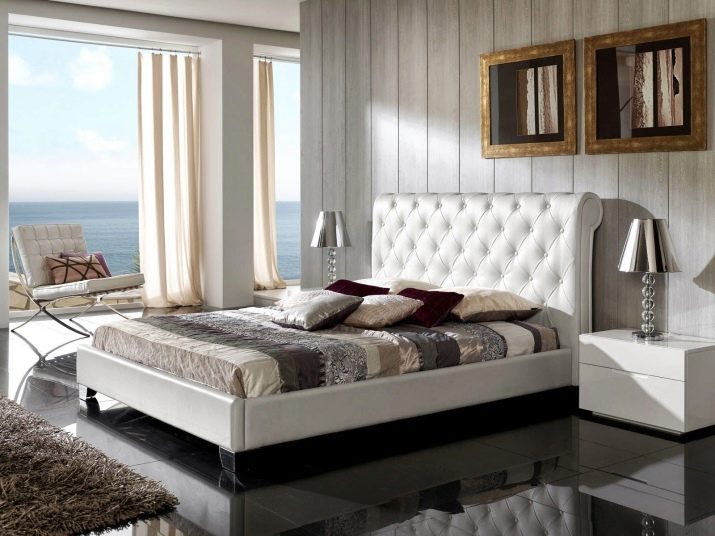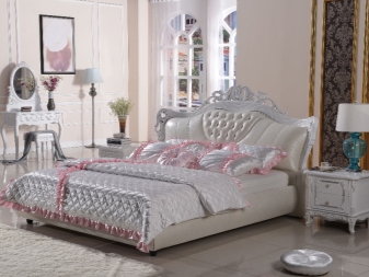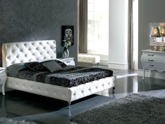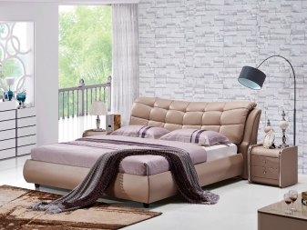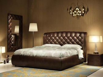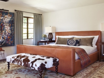 يمكن غالبًا العثور على الأسرة ذات المفروشات المصنوعة حصريًا من الجلد الطبيعي أو مع الجلد البيئي في غرف النوم ، بغض النظر عن حجمها وأسلوبها. يلاحظ المصممون أن هذه المواد متعددة الاستخدامات وتتناسب تمامًا مع التصميمات الزخرفية المختلفة. لا يزين الأثاث الجلدي أماكن المعيشة فحسب ، بل يزين أيضًا الفنادق والمطاعم والمكاتب ومراكز التسوق والبوتيكات.