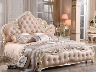 - سرير بني أو بيج – اختيار عملي وأنيق للباروك والكلاسيكية والروكوكو وغيرها من الاتجاهات المماثلة. يمكن تزيين النموذج بألوان البيج الرقيقة بكشكشة.