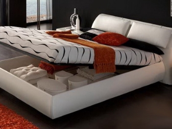- وظائف. النماذج الحديثة للأسرة الجلدية في السوق ليست جميلة فحسب ، ولكنها عملية أيضًا. قطعة الأثاث هذه هي القطعة المركزية في أي غرفة نوم ولكي لا تفرط في تحميل الغرفة بالأثاث ، يمكنك شراء خيارات ذات أدراج ومنافذ واسعة لتخزين البياضات..