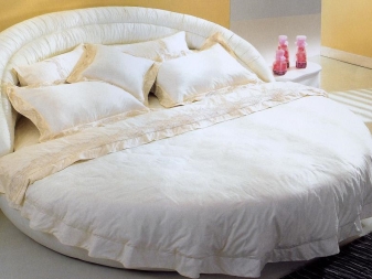 عشاق الديكور الحديث وأولئك الذين يفضلون الحلول الأنيقة غير العادية يختارون الأسرة المستديرة. يوجد خيارات للبيع بلوح رأسي مستطيل أو مستدير. قد تختلف أحجام النماذج.