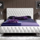 سرير أبيض أنيق ومريح مع لوح أمامي مرتفع. تم تزيين النموذج بأزرار زخرفية وأحجار الراين الكبيرة. يتناسب الشكل المستطيل القياسي واللون الكلاسيكي مع التصميمات الداخلية المختلفة. السرير مجهز بأرجل معدنية صغيرة.