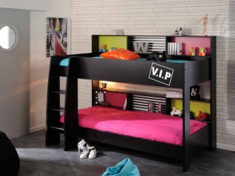 يمكنك طلب سرير بتصميماتك المفضلة على الفور أو تزيين الأثاث بالملصقات. سيكون من الممتع للأطفال التفكير في مظهر أماكن نومهم. لا توصل المصابيح أو المصابيح بهيكل السرير ، حيث يمكن أن يسخن الخشب ، ويمكن للأطفال حرق أنفسهم على المصباح المتوهج..
