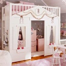 بالطبع ، عند اختيار الأثاث لغرفة نوم الأطفال ، لا ينبغي لأحد أن ينسى المعايير المهمة مثل عمر الأطفال واهتماماتهم. تحب الفتيات الأشياء الجميلة. يُنصح بمنحهم الفرصة للمشاركة في اتخاذ القرار ، لتحديد لون وأسلوب وتصميم أماكن نومهم المستقبلية.