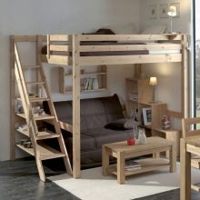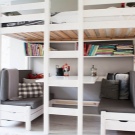 في كلمة واحدة, باختيار سرير علوي ، يمكنك شراء مكان للنوم ومنطقة عمل ونظام تخزين ومكان للراحة. الشيء الرئيسي هو أن مساحة الغرفة لن تبدو مزدحمة., ولكن ، على العكس من ذلك ، سيبدو كل شيء أنيقًا جدًا.