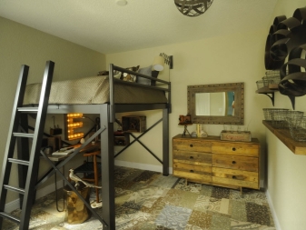 من المهم أيضًا التركيز على الجزء الداخلي للغرفة. يجب أن يتناسب السرير العلوي تمامًا مع المساحة وأن يكون منسجمًا مع جميع قطع الأثاث.