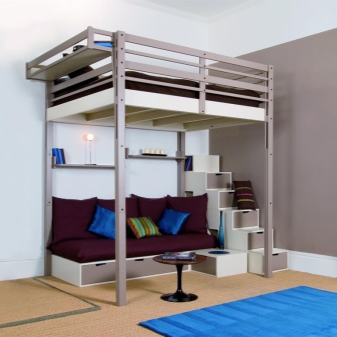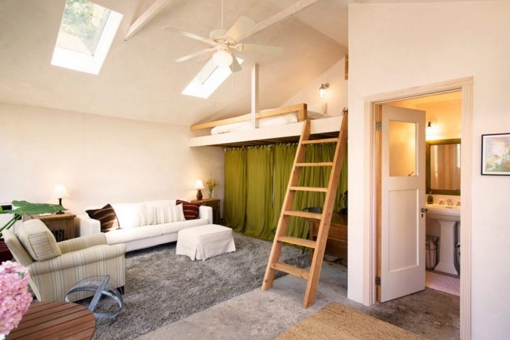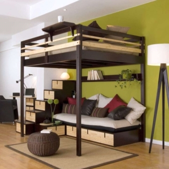 يعتقد مالكو الشقق الصغيرة أو شقق الاستوديو أن السرير العلوي هو الحل الأمثل لتقسيم المناطق. بفضل قطعة الأثاث هذه ، تمكن العديد من الأشخاص من تنظيم الغرفة حسب رغبتهم ووضع جميع الأثاث اللازم فيها. الشيء الرئيسي هو أن المنتج يناسب التصميم الداخلي وله أبعاد مسموح بها لغرفة معينة..